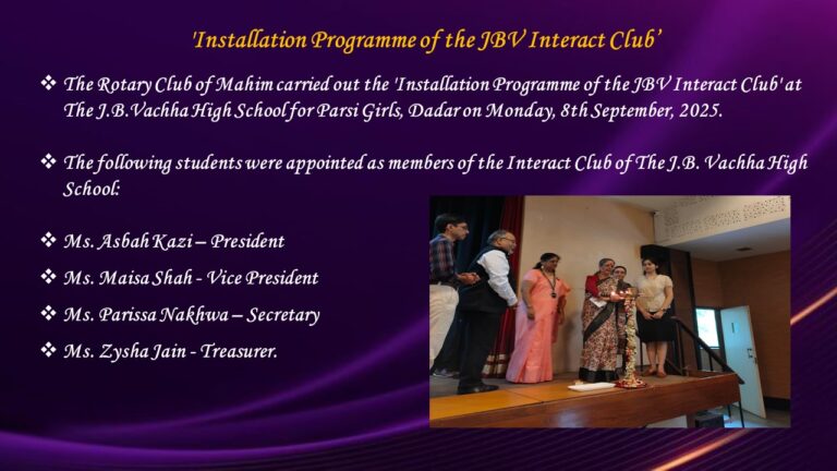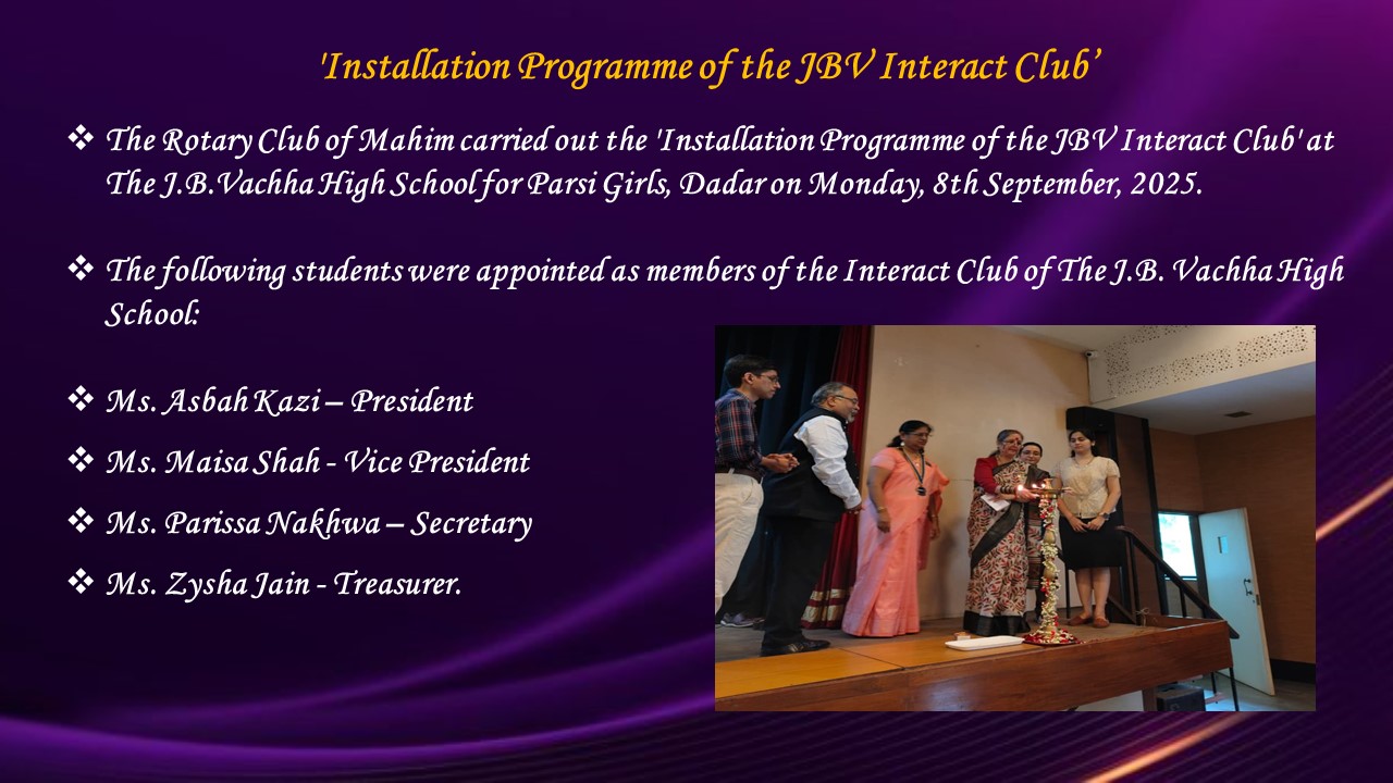 Installation Programme of the JBV Interact Club - by The Rotary Club of Mahim on 8th September, 2025.